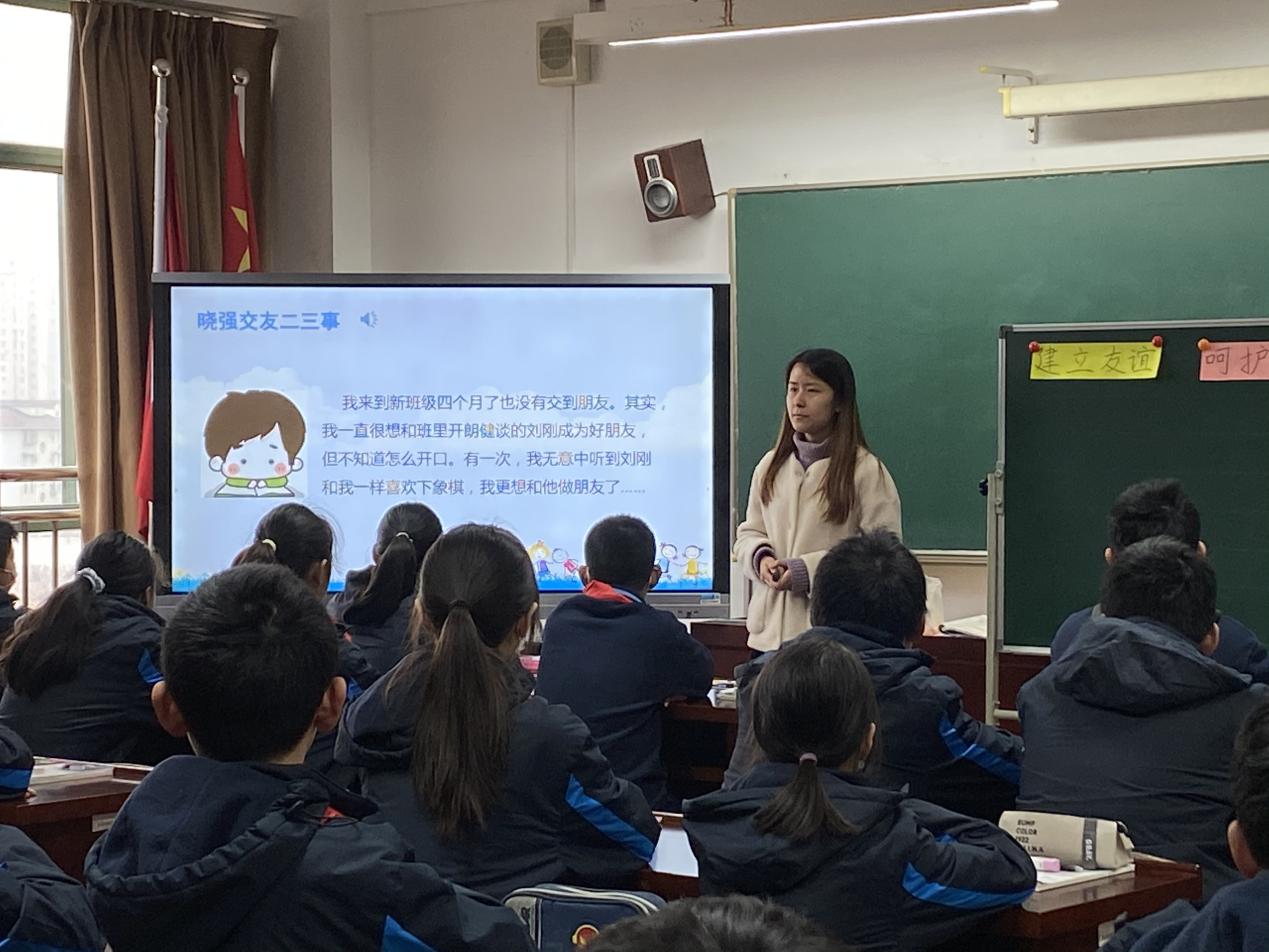 高境四中孙老师执教的是六年级《道德与法治》第二单元《友谊的天空》第三课时“建立呵护友谊”。孙老师通过“你和你的朋友是怎么成为朋友的?”这一问题导入,并追问“建立友谊时需要注意些什么?成为了朋友之后到底该如何保持长久的友谊?”激发学生的学习兴趣。通过案例分析及自身经历,进一步探讨有关建立友谊方面的困惑和用心呵护友谊的方法。最后通过观点的辨析,体会人与人之间的关系有远近亲疏,引导学生懂得要处理好与他人的各种关系,为下一节课的讲授做铺垫。