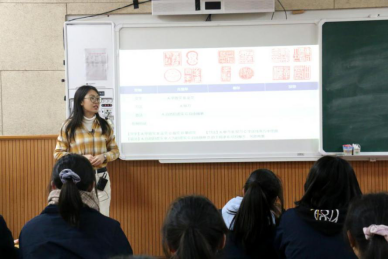 赵老师结合进博会热点话题,联系实际问题,和学生一起探讨了经济全球化的趋势。刘老师带来了一堂生动有趣的篆刻艺术课,她将展示、比较、设计融入到课堂中,让学生在愉悦的氛围中感受到篆刻之美。