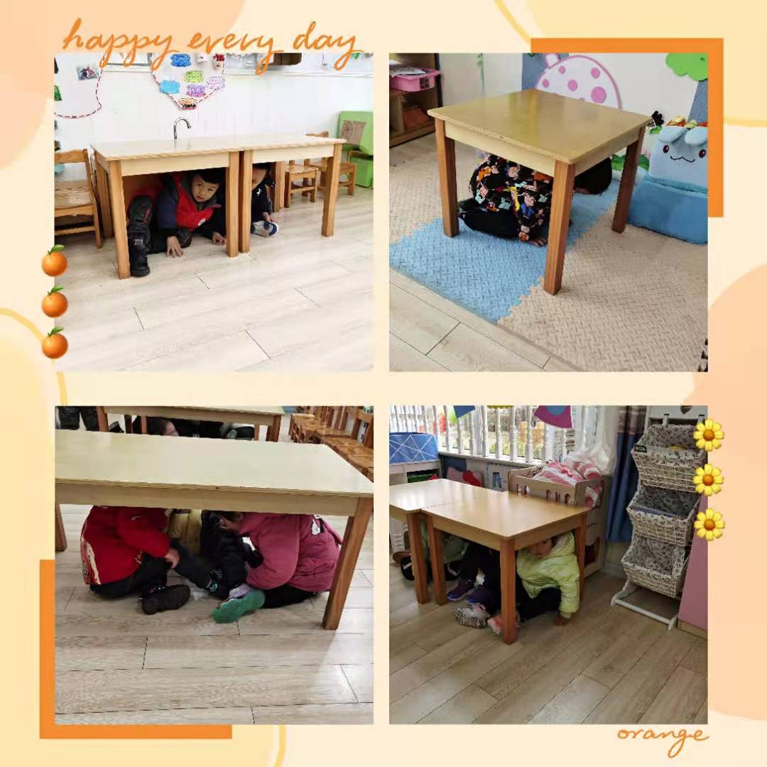 嘟……上午9点整,当第一声警报响起,小朋友们在老师的提醒下用双手保护头部,尽量躲在了能保护自己的桌子下,三角区等安全区域。当第二声警报声响起,利用两次地震之间的间隙迅速组织小朋友保护头部弯腰跟着老师从安全通道撤离教室,并紧跟着前面的小朋友下楼梯,集合在空旷的操场上蹲下。当全园师生安全撤离到操场后,各班老师迅速清点本班人数并向潘老师汇报,并再次向全体教师和幼儿巩固了避震动作及逃生要领。