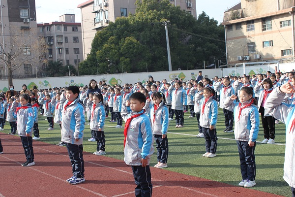 操场上响起激越昂扬的国歌,鲜艳的五星红旗迎着朝阳缓缓升起,长江路小学全体师生以肃立的姿态、灿烂的笑容迎接新学期的到来。