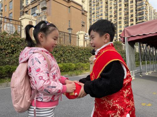 2月22日,踏着清晨第一缕阳光,幼儿有序排队,各年级错峰入园。大班幼儿在园门口为大家献上了锣鼓欢迎仪式并为所有幼儿送上了开学礼物——小金牛玩偶。伴着喜庆的节奏,孩子们开始了晨检,从体温检测到手口检查,高高兴兴步入了新学期。