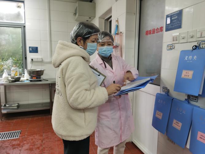 在后勤主任的陪同下陈老师实地查看了幼儿园食堂内外环境和卫生情况,并检查了食堂工作人员的现场操作情况。了解园所食品操作流程,消毒和安全等工作。认真听取幼儿园领导对食堂管理和监督机制等工作情况的汇报。