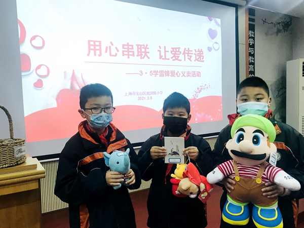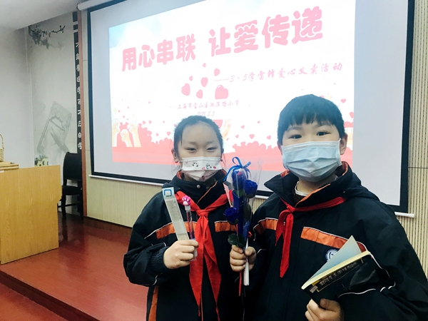3月5日学雷锋日,我校党支部带领淞滨全体教师以及少先队员们齐聚在四楼,举行主题为“用心串联 让爱传递”的爱心义卖活动。一大早,各个摊位的志愿者们就行动了起来,精心布置摊位、商议价格,期盼活动正式开始。