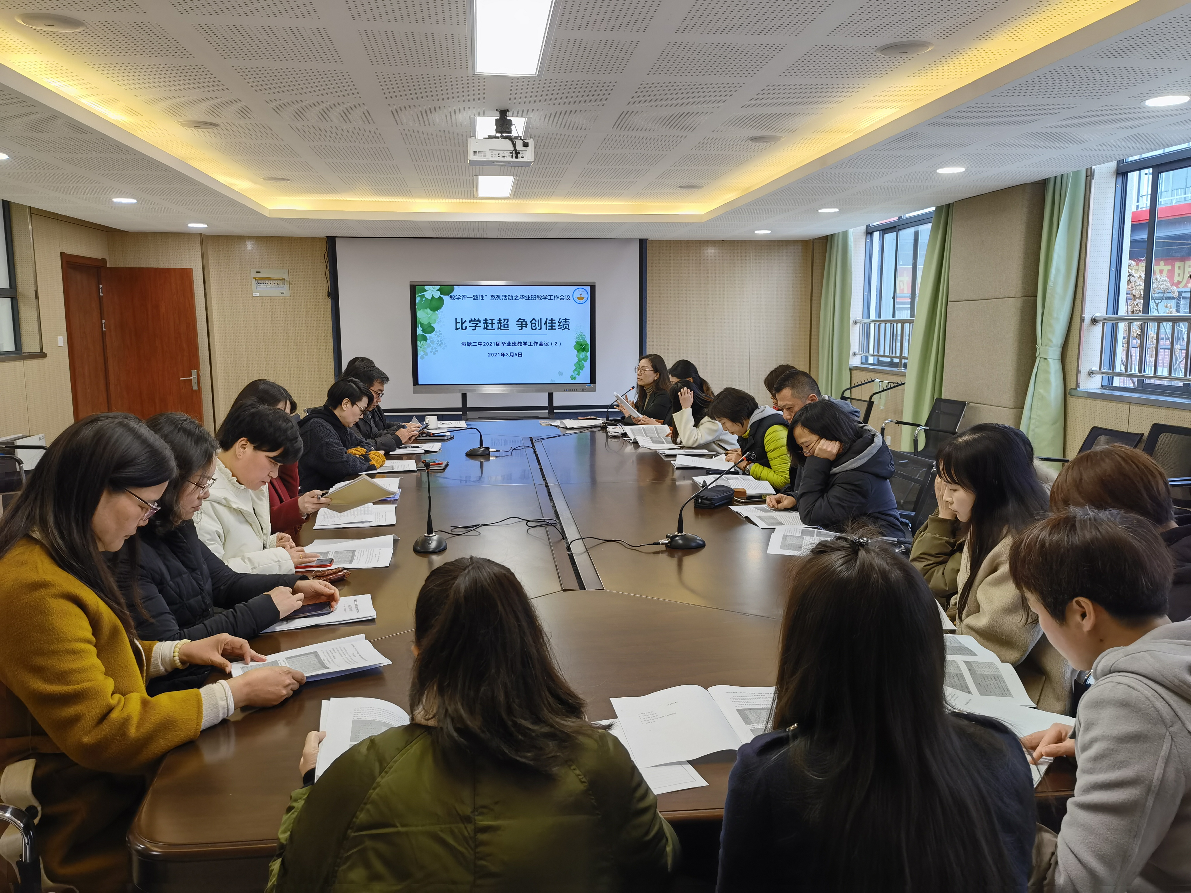 首先,教导处严老师针对上学期末的一模考进行了分析。她从“全区视角”“全校视角”和“班级视角”三个层面对本届毕业班的一模考试情况进行了详细的解读。通过列举一模考中的各种数据,分学科,按比例从横向到纵向,逐一进行比较,重点分析这些数据背后蕴含的各班级、各学科所呈现的优势和存在的不足。还通过我校2020届和2021届同期考试数据的比对以及2021届三次质管考的学科水平的变化,肯定了2021届教师团队在教学上取得的显著进步。同时,严老师还明确了本届毕业班的工作要求:科学部署、重视落实、精耕细作;同心同德、团结协作、争创佳绩。