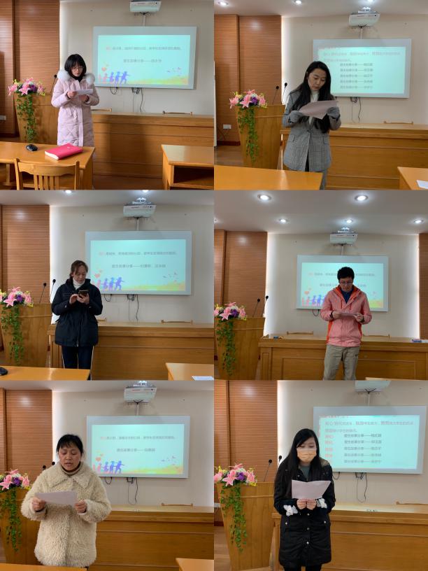 在“爱心故事交流环节”中,10位老师围绕爱心、细心、关心、耐心、转化、鼓励、赞赏、宽容等关键词和在座的所有老师分享了自己的爱生行动。他们为人师者,关爱每一名学生,用真情、真心、真诚教育和影响学生,成为学生健康成长的指导者和引路人。