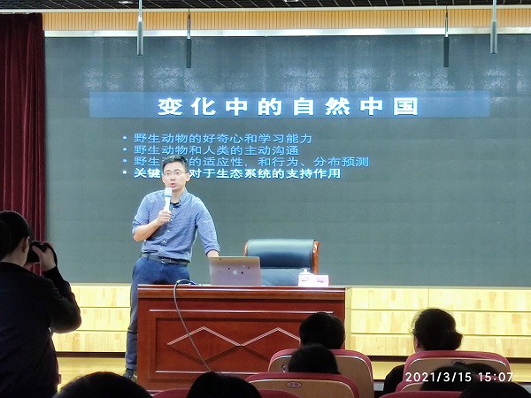 下午,全体四年级学生在学校阶梯教室共同聆听了来自复旦大学生命科学院研究员王放教授的主题演讲——《从荒野到城市:变化中的自然中国》。王教授妙语如珠,他以科考过程中遇见的羚牛、猪獾、黄鼠狼为例,讲述了野生动物的好奇心、学习能力和好奇心。此外,他通过野猪、熊猫、猎豹等物种的描述,为同学们勾勒出关键物种对于生态系统的支持作用,呼吁同学们保护野生动物更要着眼于整个生态系统的维护和发展。