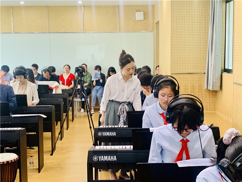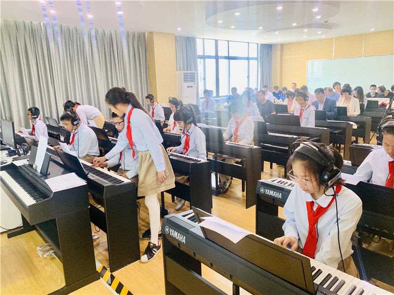 紧接着,校长们又移步到我校电钢琴教室观摩了由我校刘老师执教的一节音乐电钢琴课。电钢琴课是我校特色必修课程,体现了立足课程落实素质教育的课程多样化实践。校长们也饶有兴致地跟着刘老师亲手弹奏,并对我校的特色课程表示赞赏。