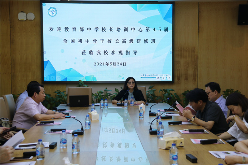 2021年5月24日,教育部中学校长培训中心“第45期全国初中骨干校长高级研修班”在华师大校长培训中心韦保宁书记的带领下来到行知附属宝山实验学校进行交流访问。