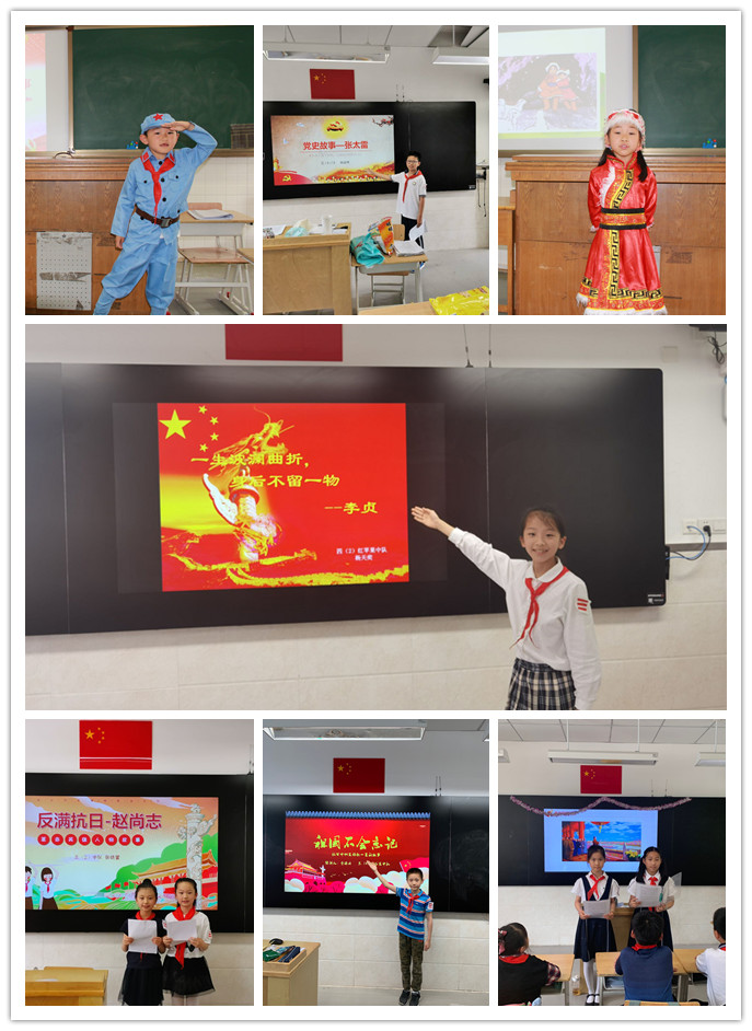 本次的主题中队会是由四个中队为一组,开展中队巡演,巡演内容西部校区为党史故事,东部校区为抗战小英雄故事(如鸡毛信、闪闪红星等)。他们饱含深情讲述了一段段英雄故事,让英雄的精神激励广大学生坚定理想信念、志存高远、脚踏实地,勇做新时代的社会主义接班人,再现了波澜壮阔的历史,让孩子们经历了一场红色洗礼。