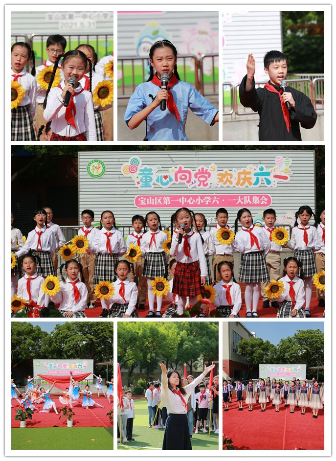 5月31日,晴空万里,微风徐徐,在这风和日丽的日子里,我校开展了“童心向党 欢庆六一”宝山区第一中心小学2021年六一集会。队员们在《红领巾飘起来》的歌声中集队来到大操场,参加集会活动。