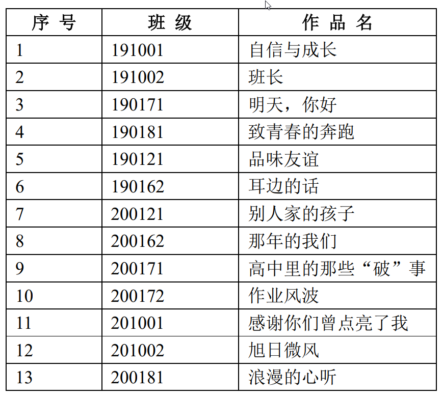 一等奖:200121《别人家的孩子》 二等奖:190162《耳边的话》