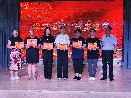 学习强国是深入学习宣传贯彻习近平新时代中国特色社会主义思想和党的十九大精神的互联网学习平台,从学习平台的注册至今,我们每一位党员都以饱满的热情积极参与到每一天的学习中,涌现出一批批学习标杆。在“岗位践行精神永存”颁奖篇中,朱德明书记为六名教师颁发学习强国“进步奖”,天天学习强国、日日与时俱进,学习强国已然成为了党员们在政治思想上实现自我成长的途径和平台,也成为了党员们每天的必修课,犹如一个生动的提醒,永远是掌握时代主动的关键。为加强党的光荣传统和优良作风教育,在孩子们幼小的心灵中播下爱党、爱国、爱社会主义的红色种子,党支部还开展了“娃娃学党史”教学方案设计比赛活动,经过支部委员的层层筛选,5篇教案入围一等奖,由曹书记为教师们颁发奖状,“娃娃学党史”让红色文化浸润童心,让红色基因一代代传承。