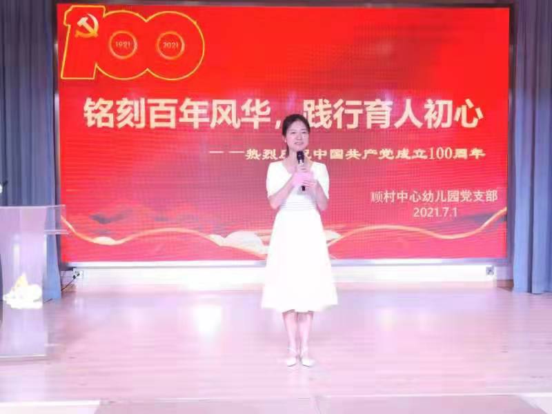 在中国共产党百年华诞来临之际,顾村中心幼儿园党支部的全体党员于2021年7月1日欢聚在帕堤欧幼儿园召开“铭刻百年风华 践行育人初心”庆祝建党100周年主题党日活动,同时邀请中共顾村镇教育委员会委员、共富小学书记朱德明,与党员们一起喜迎党的百年华诞,抒发爱党爱国情怀。