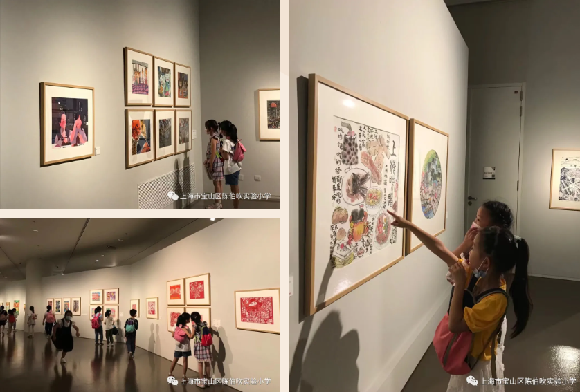 为积极推进“缩小城乡艺术素养差距”的项目研究, 7月6日上午,在上海美术家协会、市与区美术教研员、学校领导的大力支持下,陈伯吹实验小学两位美术老师带领美术社团30名学生,共同前往中华艺术宫参观“我们的幸福生活——首届上海市少年儿童美术大展”。