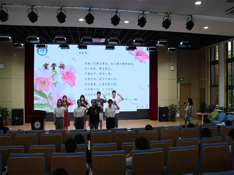 立誓为师的遇见,从心开始,我校每年教师节的传统节目——师徒结对仪式如期举行。贾雪梅副校长宣布了师徒结对名单,杨定蕾校长为“师父们”颁发聘书,徒弟们为自己的师父献上鲜花。师徒代表分别作了发言。在杨校长的带领下,新教师们在全校教师面前庄严宣誓。从今往后,师徒在教学上要互相促进,互相提高。作为师父要倾囊相授,毫不保留。作为徒弟虚心学习,在教育教学实践中,不断取得进步。