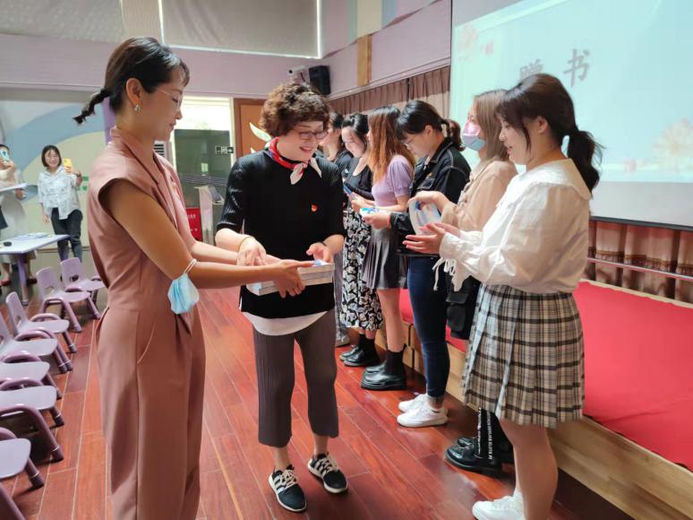 随后,应老师为基地见习教师赠书《云淡风清》,鼓励年轻的教师们在幼儿教育这块沃土上扎根成长,践行初心使命,为党育人,为国育才。