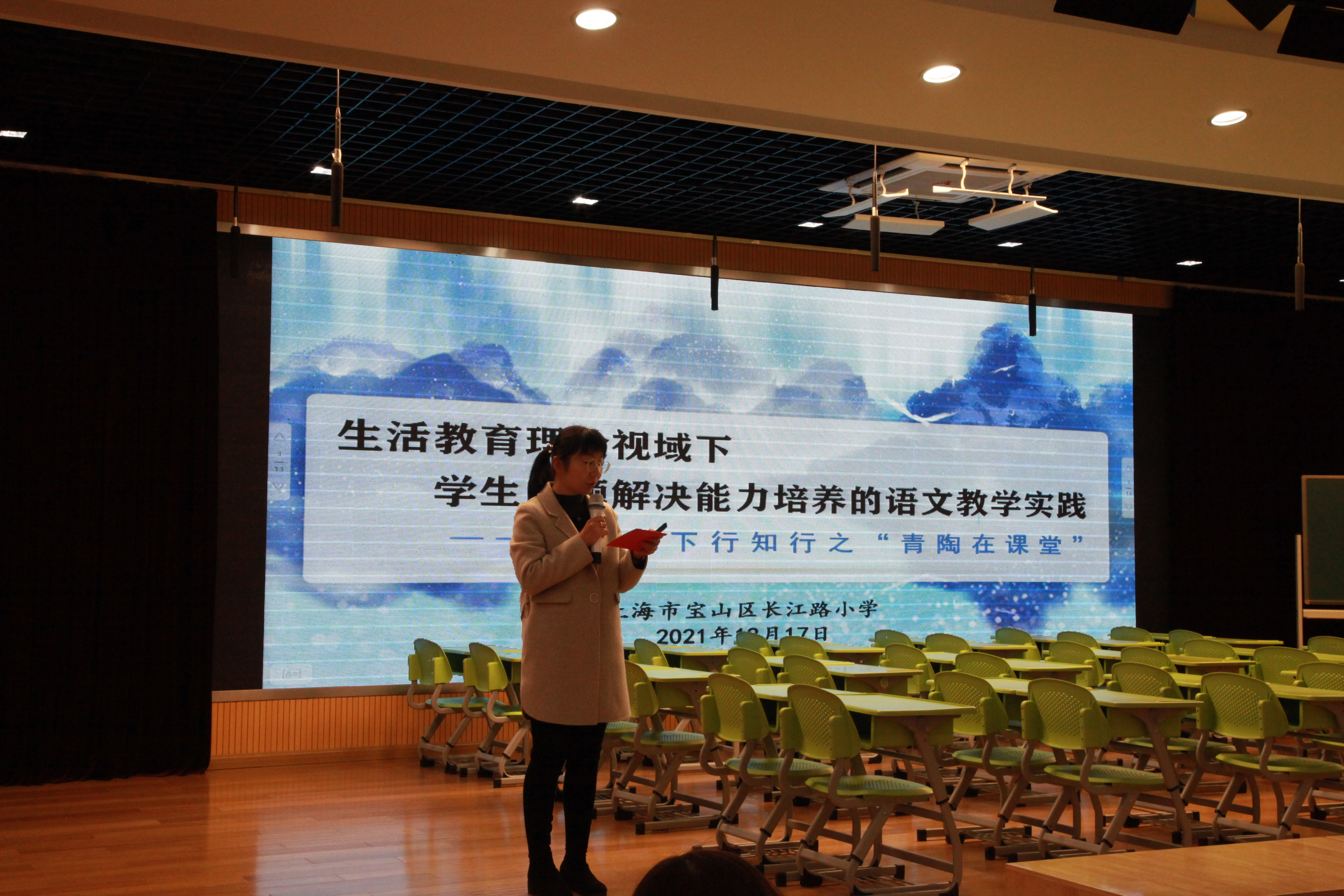 12月17日下午,长江路小学全体教职工相聚于阶梯教室,开展“爱满天下行知行之‘青陶在课堂’”活动。