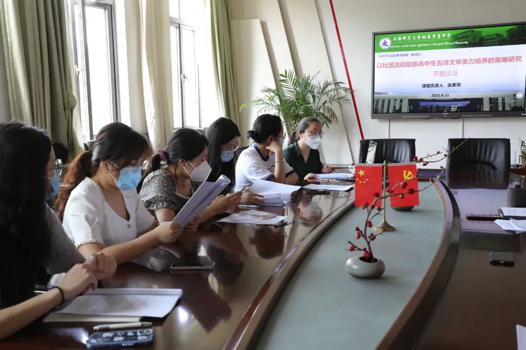 暖风徐至,夏蕊轻开。2022年6月15日上午,罗店中学语文学科区级一般课题论证会兼新教师科研培训会在科研主任陈兵老师的主持下举行。