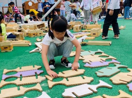 海尚明城幼儿园是户外自主游戏的试点园,以环境提供基础,以幼儿的亲身体验为设计要素,让幼儿在游戏中收获快乐,展现童真。为把握好游戏、教育、劳动的关系,创设可操作性劳动环境,支持幼儿在游戏前后自然地参与游戏材料的整理和收纳。每学期,还会定时组织幼儿进行积木、器材的清洗和擦拭。