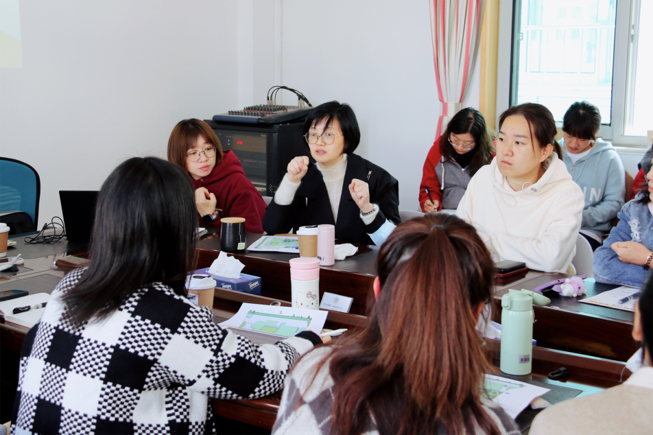 现场观摩游戏结束后,罗泾镇中心幼儿园教师团队向海尚明城幼儿园及与其联盟的幼儿园园长和老师们、区游戏团跟进小组开启了分享与交流。