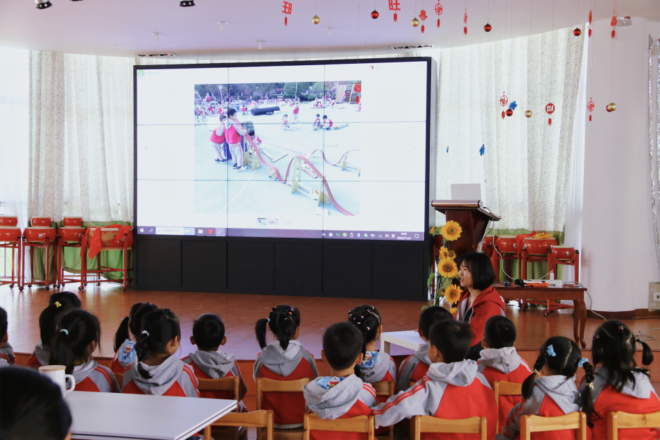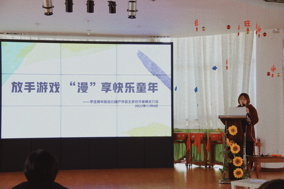 副园长柏婷老师以“放手游戏‘漫’享快乐童年”为主题,从理念引领规划先行;师幼协商初建游戏环境;结合地域特色提供适宜材料;借助“漫画日记”倾听幼儿心声;主题教研引领提供专业支撑等方面介绍了罗泾镇中心幼儿园户外自主游戏的开展情况及经验做法。