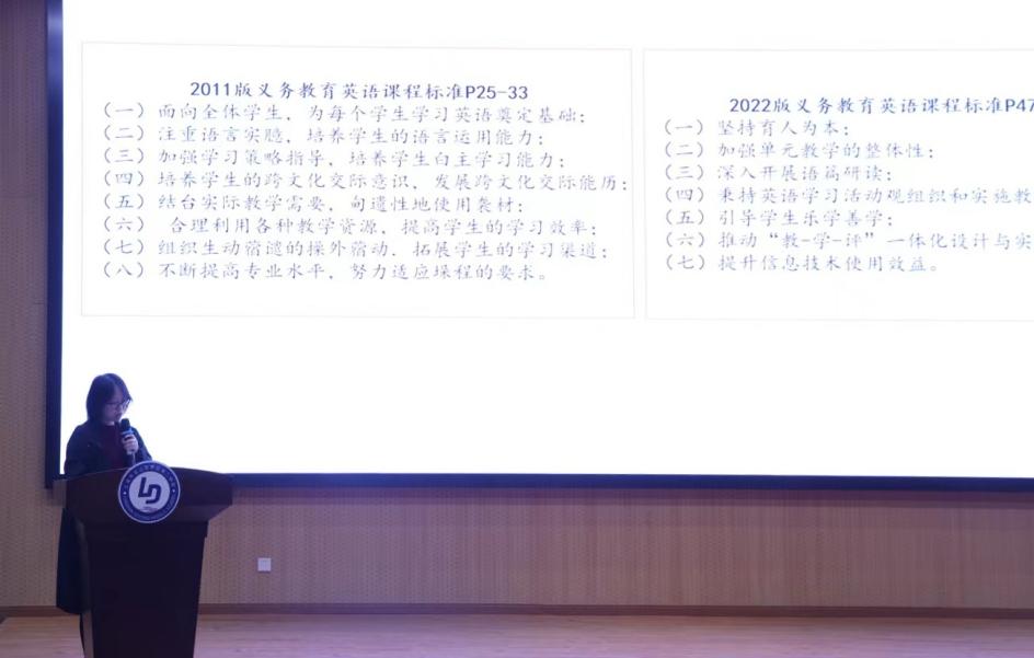 高静老师是宝山区英语学科教学能手,一级教师,她以“坚持育人为本”“加强单元教学的整体性”“深入开展语篇硏读”“秉持英语学习活动观组织和实施教学”“引导学生乐学善学”“推动‘教-学-评’一体化设计与实施”及“提升信息技术使用效益”七方面为切入点,为老师们开拓了新课标背景下教学设计的新思路。