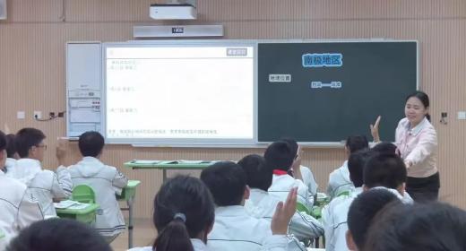 第二节课由上海师范大学附属宝山潜溪学校沙众霖老师执教。沙老师以我国第四十次南极科考活动中的“雪龙2号”为线索,设置了南极地区校园专题宣传方案设计的任务情境,贴近生活的同时,促使学生带着问题进行知识学习和要点摘抄。沙老师重视图文的运用分析,学生活用区域认知进行综合思考,课堂氛围十分活跃。