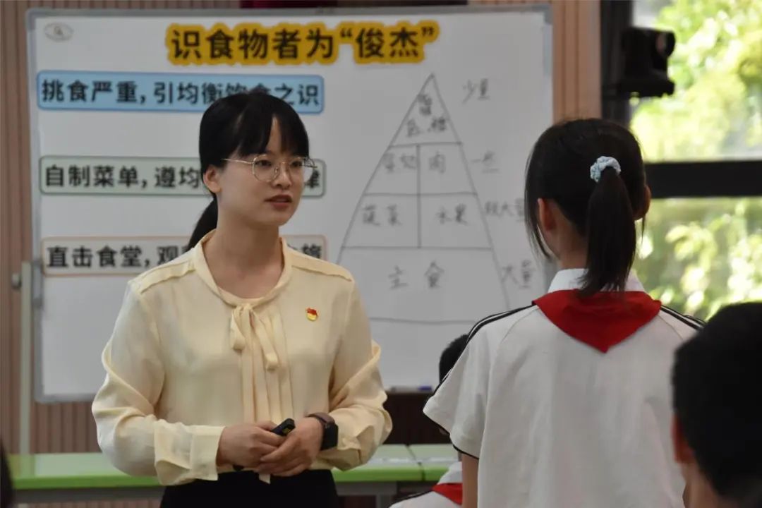 “让学生的在校午餐有营养更丰富,让厉行节俭成为餐饮新‘食’尚,是习近平总书记一直牵挂的。”王文静老师关注班级午餐浪费、挑食的现象,从政策倡导、家长期望、个人需求、尊重劳动等方面剖析问题,带领七年级学生积极思辨。