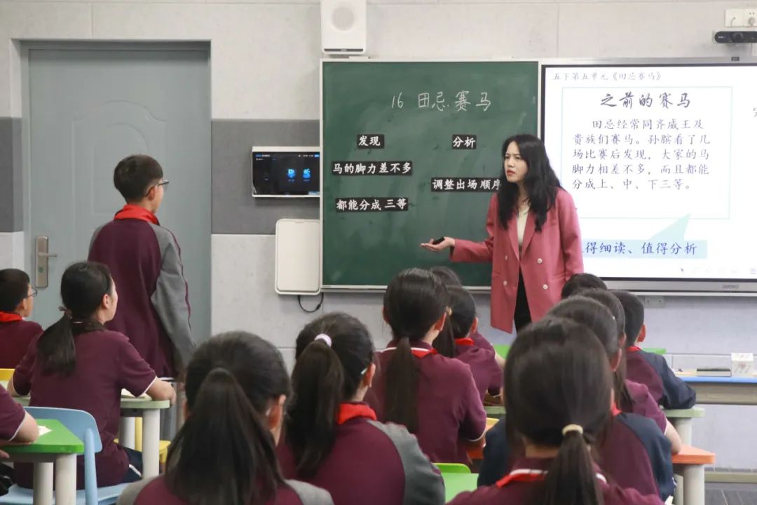 小学部王雨丝老师则深入探究《田忌赛马》第二课时,她带领学生回顾单元语文要素,结合比赛实况引导学生推断大臣思维过程,重点学习课文的“赛马”部分,引导学生深入探讨孙膑的思维过程,并以此作为契机进行语言训练,让学生不仅领略到智谋的魅力,也提高了思维能力和语文素养。