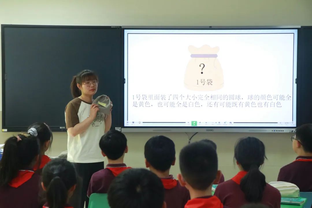 小学部龚海燕老师以小学生的认知特点为基础,通过互动游戏,将“可能性”的概念深入浅出地呈现给学生,经历了“猜想、实践、验证”的过程,提高了猜想意识、表达能力以及数据分析的统计意识、判断和推理能力。