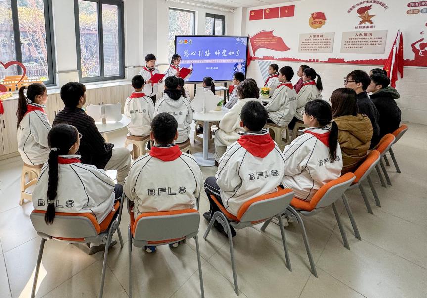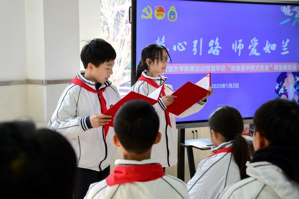 2025年第一个工作日,上海外国语大学附属宝山双语学校举行“慧心引路 师爱如兰”畅谈会,少先队员代表与党团员教师代表齐聚一堂,围绕“我心目中的大先生”畅所欲言。