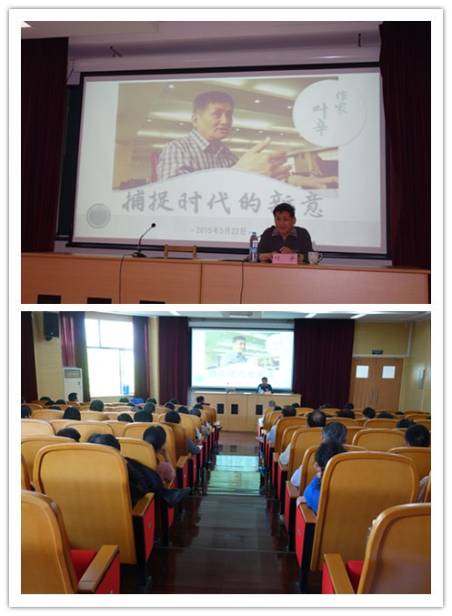 作为“悦读宝山,文化业大”系列活动之一,2015年5月22日下午,宝山区业余大学邀请中国作家协会副主席、上海市文联副主席叶辛同志到校为全体教职工作题为“捕捉时代的新意”的报告。