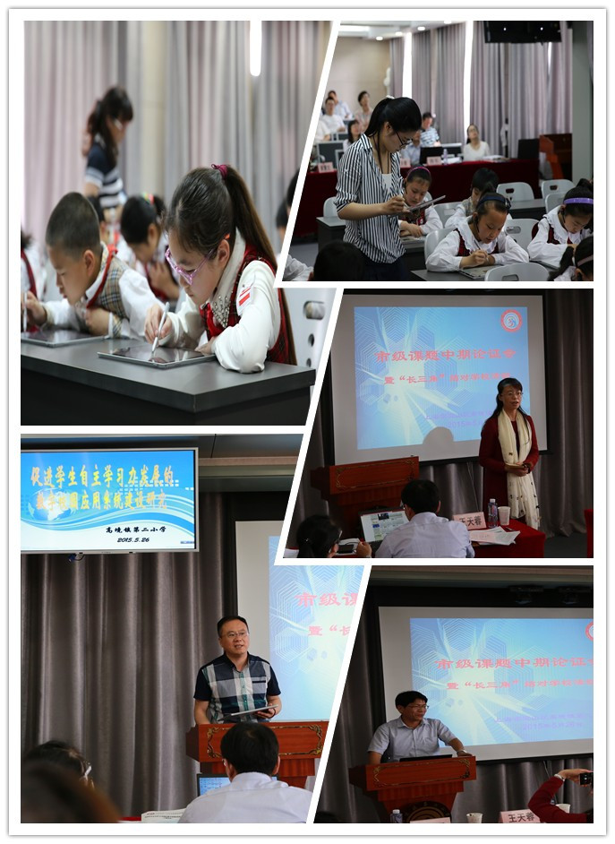 活动分为“观课”、“课题负责人汇报”、“专家点评”三个议程。首先,大家一起观摩了二小应用数字校园平台,教师学生人手一机,以改变学生的学习方式来促进学生自主学习力的发展的英语课与数学课。接着,由课题负责人向大家作了中期汇报。汇报从课题研究的背景、研究的目标与内容,研究的进展、现有的研究成果、下阶段的研究规划和研究此课题我们参考的文献向大家作了详尽的叙述。最后专家们对我校市级课题进行了点评,肯定了我们课题的研究方向,认为我们借助数字校园平台这个新技术是为深度服务的,是为自主学习服务的,是为学生个性化学习服务的,我们的研究是有成效的,同时专家也为我们后期的研究发展提出了中肯、有效的建议。