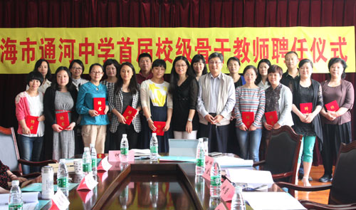围绕“队伍建设是关键”的办学宗旨,经过一个学期的方案酝酿,在以“自荐和审评”相结合的方式下,通河中学首届校级骨干教师顺利产生并在校内公示。近日,学校领导携首届18位骨干和12位课程委委员成员齐聚一起,举行了聘任仪式暨课程委员会例会。