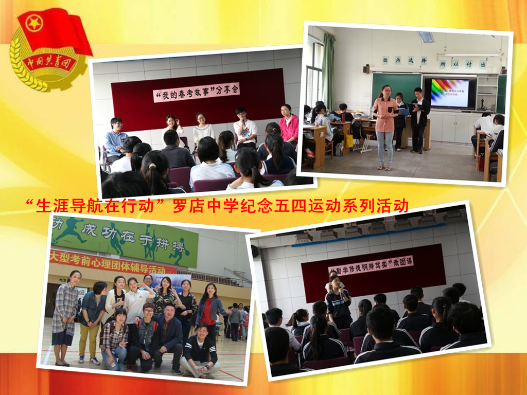 纪念五四运动96周年之际,罗店中学在红色五月开展了以“生涯导航在行动”为主题的系列活动。学校团组织结合高中各年级迫切的生涯规划现状,精心设计四大项目,创设环境整合资源,以立体丰富的活动形式,满足团员青年日益凸显的生涯规划诉求,真正体现育人根本职能。