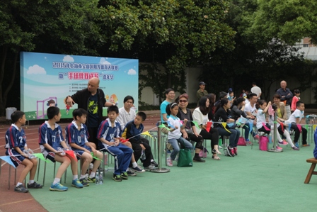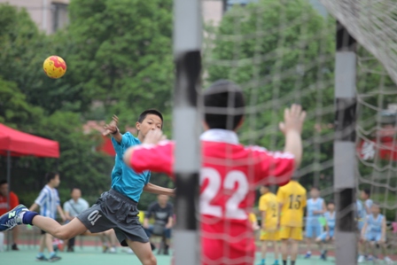 赛场上运动员们挥洒汗水,奋勇拼搏;赛场下拉拉队员们和热心的家长们的助威声不绝于耳。