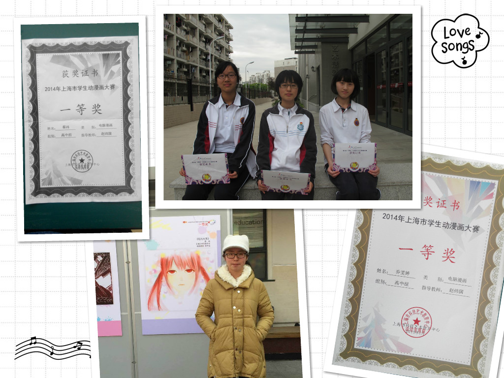 上大附中动漫社团在赵炜国老师指导下,利用每周社团活动时间,在艺术活动中心(数字艺术工作室、书画创作室)开展绘画创作。作为国家二级美术师的赵老师,不仅注重提高学生绘画技巧,还努力培育绘画者良好的绘画品格与精神。他的学生多次在国内外重大赛事中获奖,不久之前的上海市学生动漫大赛、上海市学生读书活动书画艺术创作比赛中分别获得三个一等奖。