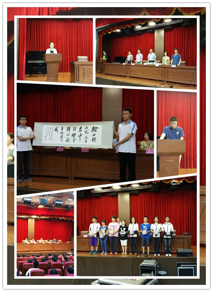 校领导为学生们颁发了毕业证书,毕业学生向学校赠送书法作品留念,摘欧阳修诗“轮曲揉而就,木直在中绳。坚金砺所利,玉琢器乃成”,感谢师长们“三年呕心沥血,今朝点石成金”。