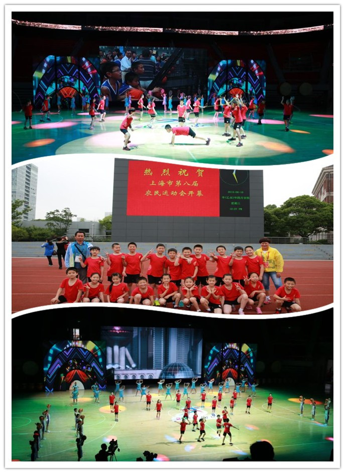6月10日下午,上海市第八届农民运动会在宝山体育中心开幕,高境二小花样跳绳队应邀参加上海市第八届农运会开幕式。