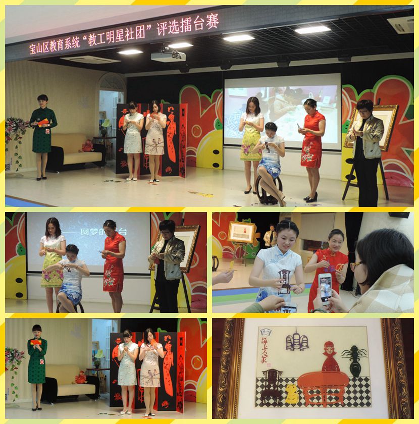12月10日,大华二小剪纸社团的老师参加了宝山区教育系统“教工明星社团”评选擂台赛,老师们身着优雅的传统旗袍,合作表演,为大家献上了一幅韵味浓厚的海派剪纸作品《海上人家》。精心设计的舞美,靓丽多姿的形象,还有那精湛的剪纸技艺博得与会评委们的一致称赞,整场演出诗情画意精彩纷呈,海派悠韵浓墨出彩,成为比赛中的一道独特的风景线。