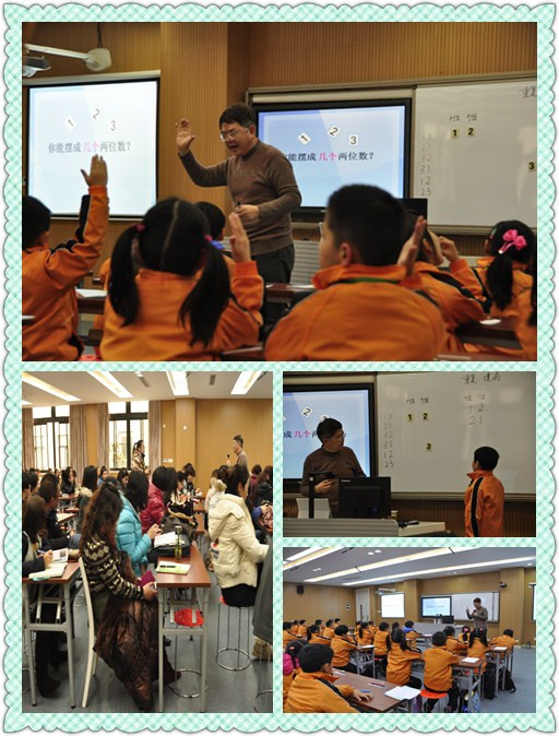 首先,潘老师为大家展示了一节二年级的数学课《搭配》,他让学生们在经历探索后进行发问,在“用数字能摆成几个两位数”的活动中,让学生获得了全面有序的思考和对解决问题的体验。潘老师在教学中善于结合教材,挖掘其本质,引发学生精彩的提问,在课堂中掀起了一波又一波的高潮,学生也在这一学习的过程中获得了成功的体验。这样的问题式教学不仅适合数学学科的老师,同样适用于其他学科的教学。课后,潘老师就《如何在课堂中落实核心素养》与老师们进行了互动,现场解答了青年教师们提出的提问。潘老师生动的课堂和精彩的讲座,让听课的老师受益匪浅。
