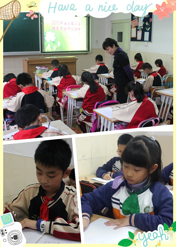 这次活动参加的对象是二至五年级的学生,评定内容为硬笔和软笔。学校在活动开展前作了充分的准备,制定了活动方案,拟定了星级评定标准,制作了硬笔和软笔书写贴。硬笔书写贴内容是从各年级语文课文中撷取而来,软笔书写贴内容则选自论语楷书字帖,将学校“端端正正写字、堂堂正正做人“的理念贯彻于书写之中,润物细无声。