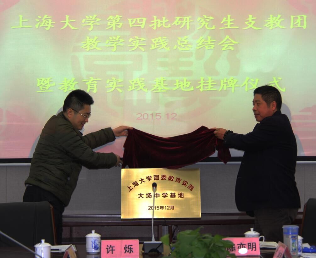 12月29日下午,上海大学第四批研究生支教团教学实习总结会暨上海大学团委教育实践大场中学基地挂牌仪式在大场中学举行。宝山区团委青年志愿者部部长刘燕、上海大学团委书记许烁等参加会议并发言。
