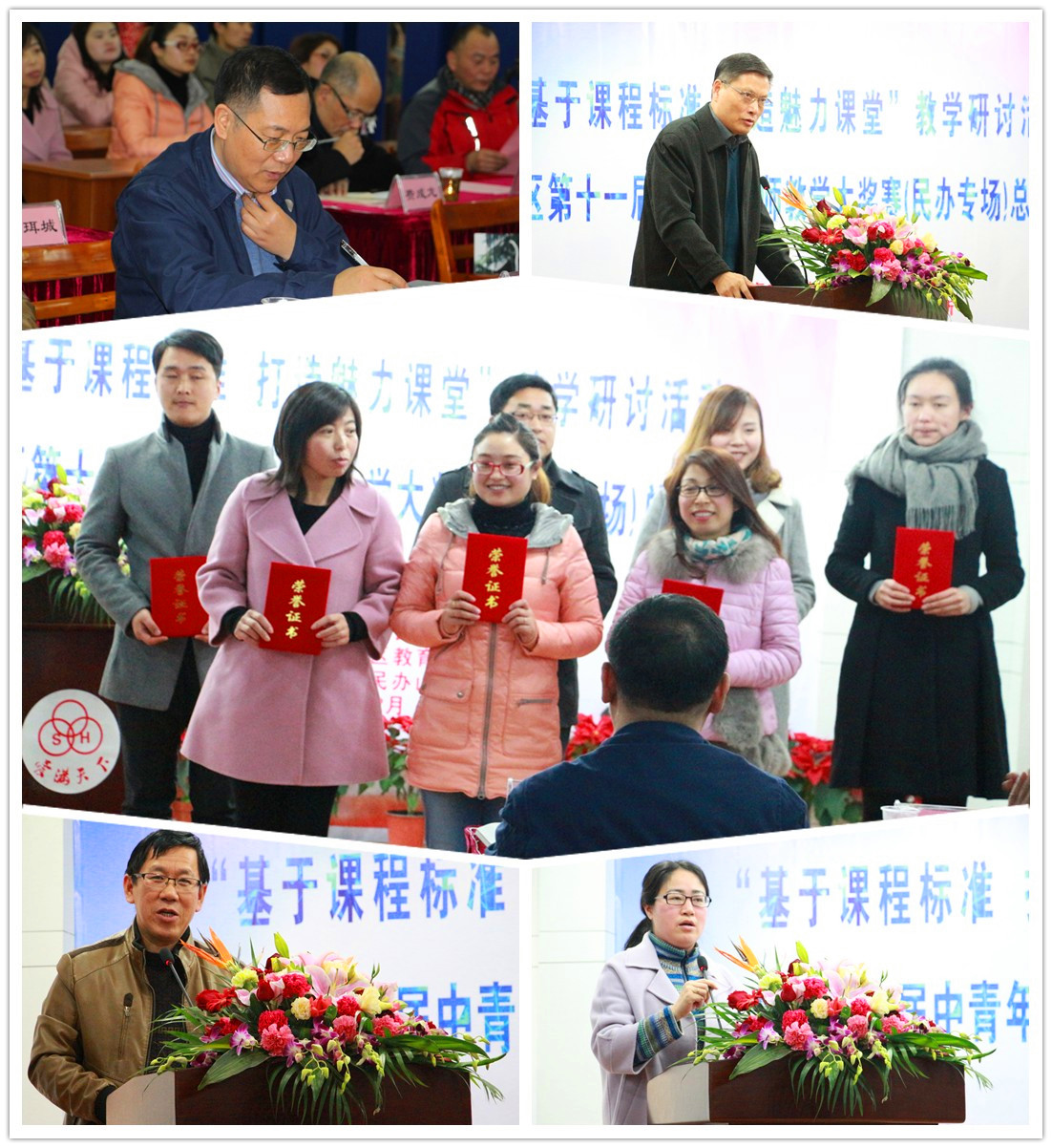 下午宝山区第十一届中青年教师教学评比活动(民办专场)总结表彰会召开。会议伊始通过数字故事的形式介绍了宝山区民办随迁子女学校的发展情况,宝山区教育局副局长陆荣林对评比活动做总结。会上,上海市民办中小学协会党组副书记茹祖望、原上海市民办中小学协会副秘书长宋大隆、上海市民办教育协会副秘书长费成龙、宝山区大场镇教委主任左忠明为获奖教师颁奖。接着获奖教师代表发表获奖感言。随后,上海市教科院民办教育研究所副所长唐晓杰结合“基于课程标准的教学与评价”对教师课堂教学提出建议。最后,上海市教委基教处龚柳老师、上海市民办中小学协会副会长周纪平分别发言,对宝山区民办随迁子女小学的发展给予肯定,为民办小学今后的发展指明前景。