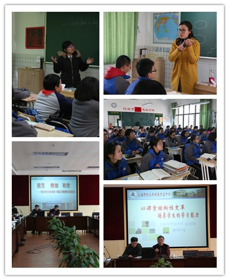 2015年12月29日下午,上师大附属罗店中学见习教师规范化培训基地召开了2015学年度第一学期的总结会。来自罗店中学、顾村中学、馨家园学校和鹿鸣学校的教导主任应邀参加了本次会议。本次活动首先由两位见习教师代表开设了两堂总结展示课。在接下来的总结会上,来自鹿鸣学校的老师代表见习教师作了发言,他谈了自己作为新教师在半年见习过程中成长的心路历程,同时感谢带教老师的悉心指导,使他尽快进入教师的角色。同时来自罗店中学的老师作为指导教师的代表也做了发言。她从教学和班主任两方面交流了自己在指导见习教师过程中的做法。接着,基地学校的副校长作了主题为《规范、专业、精细》的阶段总结报告。他从回顾与介绍、主要工作经验与做法、特色工作或创新举措、后阶段工作思考或打算四个方面回顾了整个学期的工作。随后,聘任学校的领导也作了发言,并对基地学校的规范有序管理,指导教师的敬业精神给与了高度评价,为见习教师的快速成长感到由衷的欣慰,同时也对见习教师提出了殷切的希望。