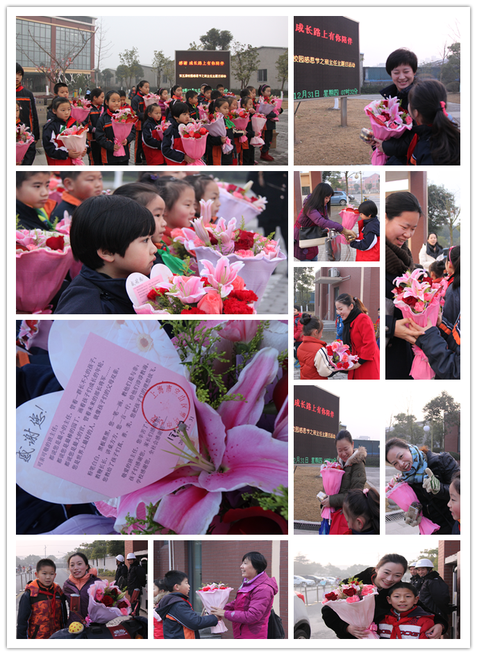 清晨,学校校门口,伴着《班主任之歌》,27位学生代表捧着鲜花,带着微笑,等候着各自班级的班主任们。当他们的身影一出现,同学们就送上鲜花,满满一个拥抱后,小手儿牵着大手儿、说说笑笑和班主任走进教室……