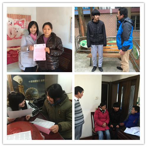 家访前,青年骨干教师们认真“备课”,一是备家长,认真阅读有关资料或事先向学生了解家长的一些情况,以便与家长进行交流时有共同话题;二是备学生,准备好学生的有关资料,与学生交流,收集有用的信息,加强对学生的了解,准备与家长交流时的重点话题。家访中,教师就有关学生安全教育,督促家长也要教育学生增强安全防范意识;了解学生家庭情况、成长环境、在家表现、学习习惯和生活习惯等;向家长反映学生的学习情况和在校表现,期望家长用科学的方法教育孩子;了解掌握学生学习困难、思想和学业上有重大变化的学生情况,有针对性地采取帮扶、辅导和其他助学措施,帮助他们克服困难,鼓励他们积极上进,健康成长这四个方面的工作进行。最后,教师们为结对助学家庭送上了一封封慰问信和写满新年祝福语的明信片,鼓励学生在初三冲刺阶段发奋学习、坚定信念,争创佳绩。