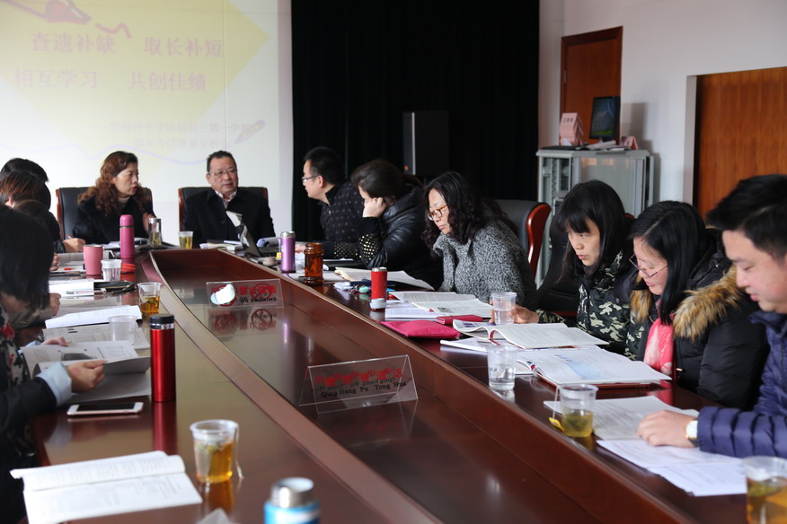 顾村中学召开初三年级期末一模考试分析会议。备课组长认真分析了各科考试情况,做出全面的质量分析,并制定出下一步奋斗的方向和目标。教导处对初三的一模考试情况作了全方位的详细分析。学校领导做了总结性发言:要共同找出薄弱所在,明确目标,抓基础、抓落实、抓平衡、抓提高。通过本次一模试后分析会,使初三每个教师重新定位,为冲刺中考提前做好准备,在原有的基础上取得更大进步。