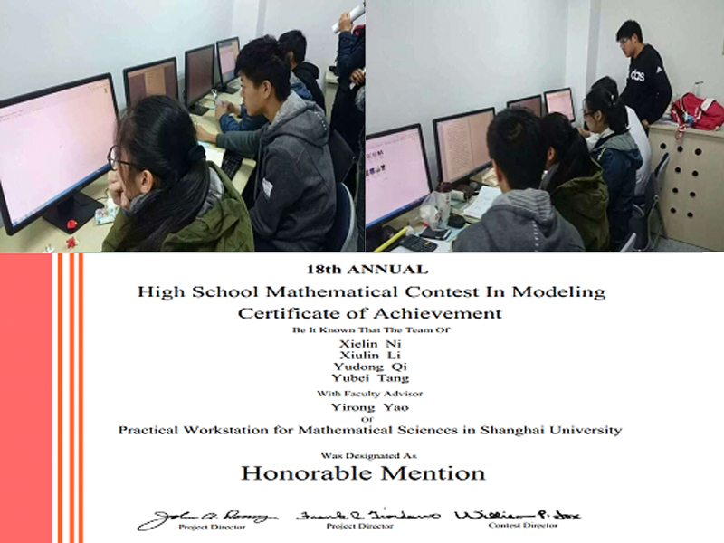 在2015年第18届美国中学生数学建模竞赛(HiMCM)中,我校高二年级四位同学,倪燮邻、祁煜东、汤雨蓓、黎秀琳组成的参赛队在备课组长周老师的指导下喜获“荣誉提名奖”(二等奖)。