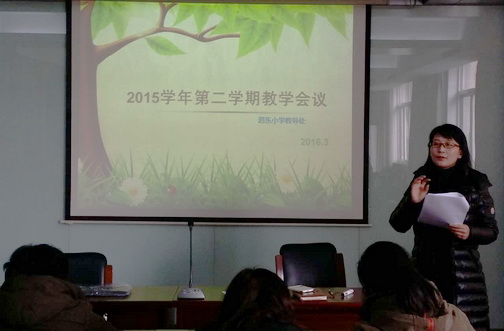 教导主任围绕接受区进修对学校教学工作的一日视导,对本学期教导处计划与全校教师进行了交流讨论,并结合实例对教师进行培训。“基于课程目标的教学与评价工作”依旧是本学期教学工作的重点之一,学校也将通过校本评价手册的运用,引导教师更加关注学生的兴趣的引入与习惯的培养。“提升校本教研的实效”是本学期又一重点工作,本学期校本教研中我们将聚焦主题教研的有效性,引领教师对课堂教学、对阶段性练习进行有质量的诊断分析,并形成整体性的质量分析,以此推进研训质量的提升。
